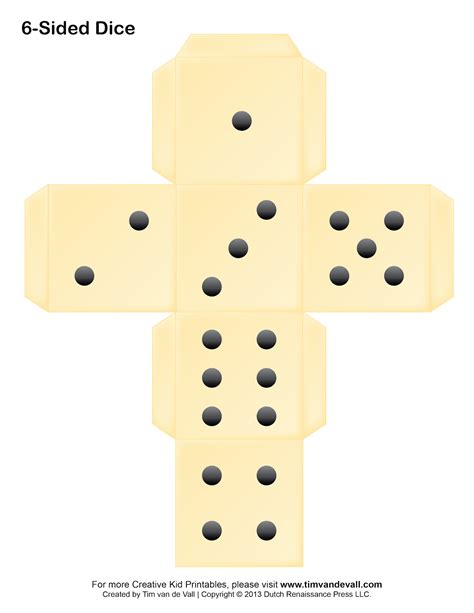 Six Sided Dice Layout - Created by tim van de vall | copyright © 2013 dutch renaissance press llc. All you need is some card, scissors and glue. Asian style dice bear similar patterns to western ones, but the pips are closer to the center of the face;. For more creative kid printables, please visit www.timvandevall.com. There are many printable paper dice.